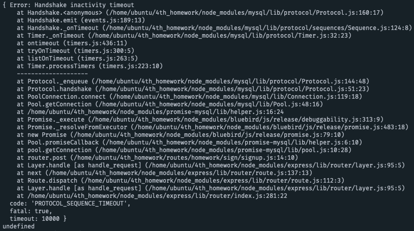 위와 같이 dbConfig.js에서 aws rds 정보를 가지고 createPool()하여 pool을 받아왔다.